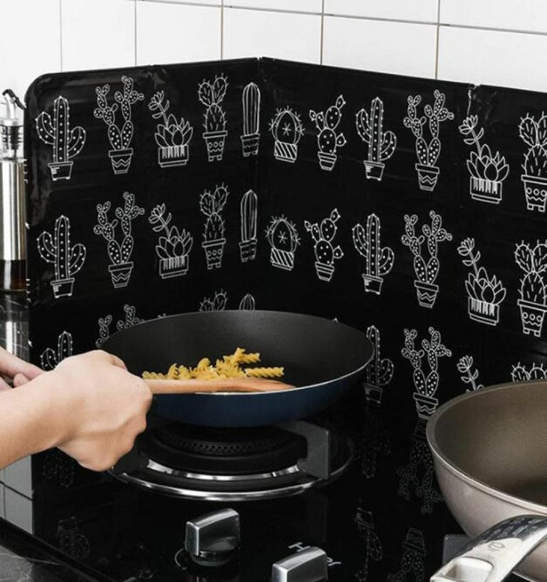 Protectie din aluminiu anti-stropire pentru gatitul pe aragaz, lavabila, culoare Neagra