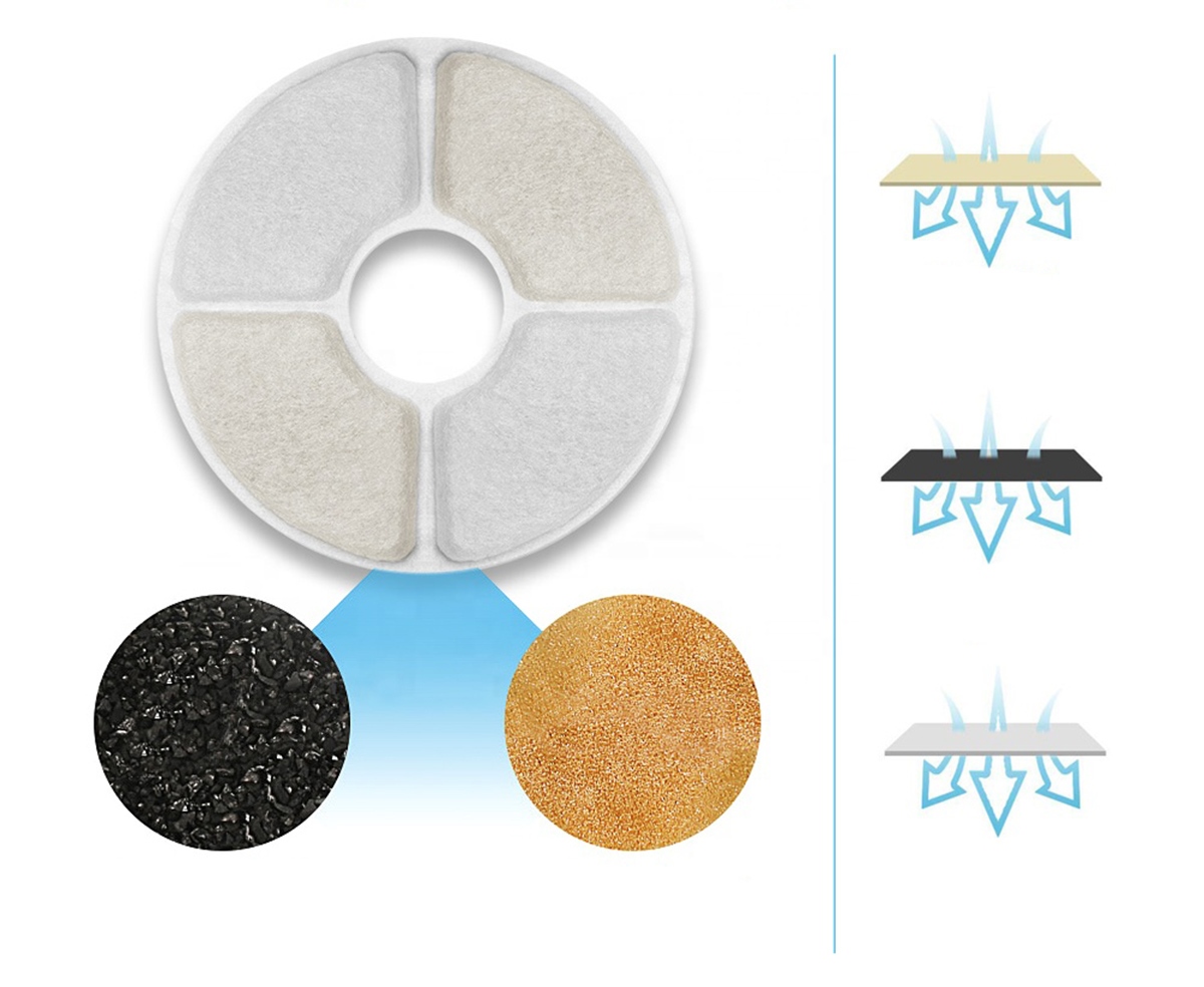 Adăpator automat pentru animale de companie. Design atractiv în formă de fântână cu mai multe duze. Un rezervor mare de apă cu o capacitate de până la 2,4 litri asigură o utilizare pe termen lung. Sistemul de filtrare (cu un filtru înlocuibil) oferă apă proaspătă și curată pentru animalul nostru de companie. Adapatorul este dotat cu o pompa silentioasa si eficienta, aparatul putand functiona cu succes noaptea. Aparatul are trei moduri de funcționare diferite (debitul de apă). Siguranța de utilizare este sporită de funcțiile de oprire automată și semnalizare apă scăzută (cu iluminare de fundal LED).