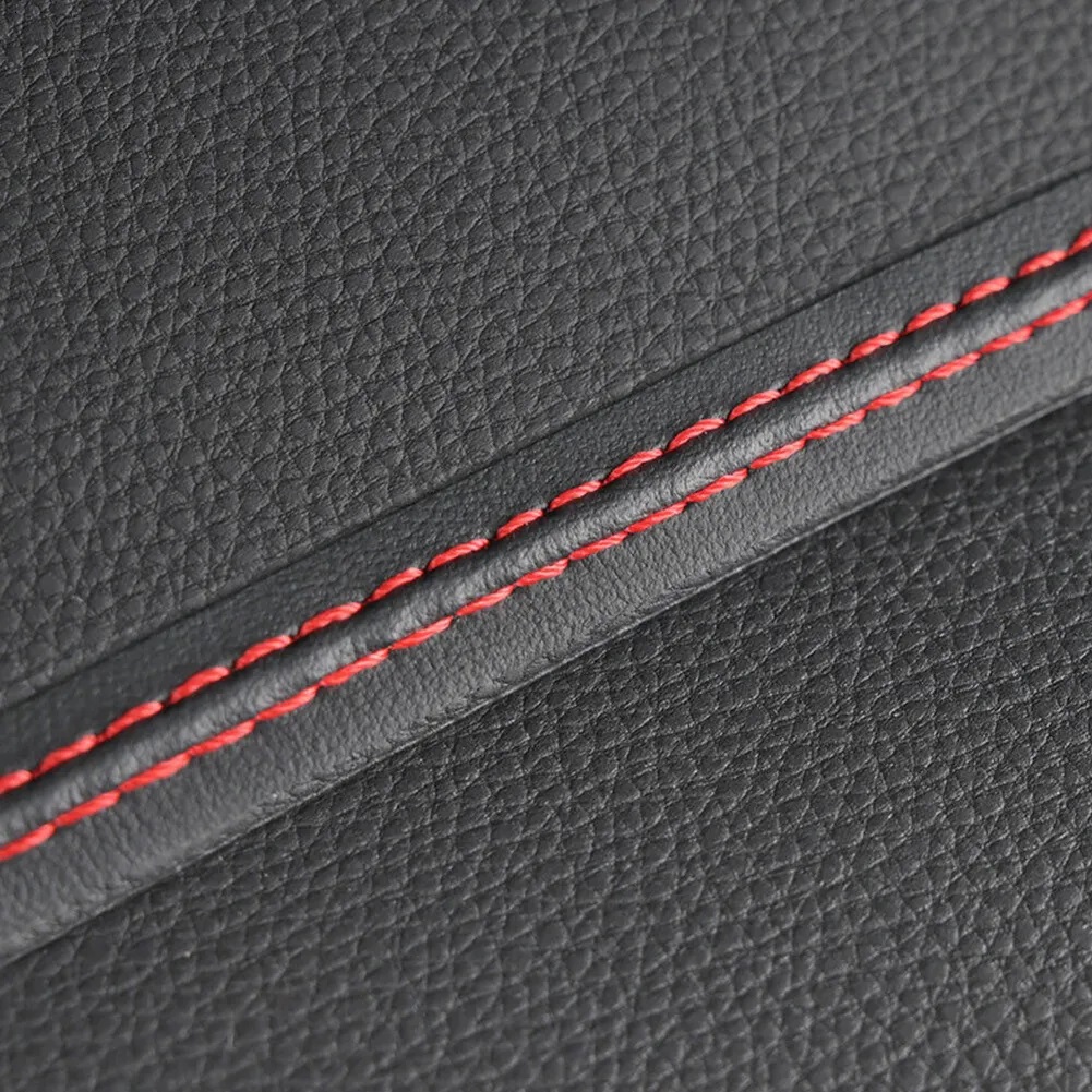 Banda decorativa pentru interiorul vehiculului, lungime 2m, din piele ecologica, culoare Neagra + cusatura Rosie