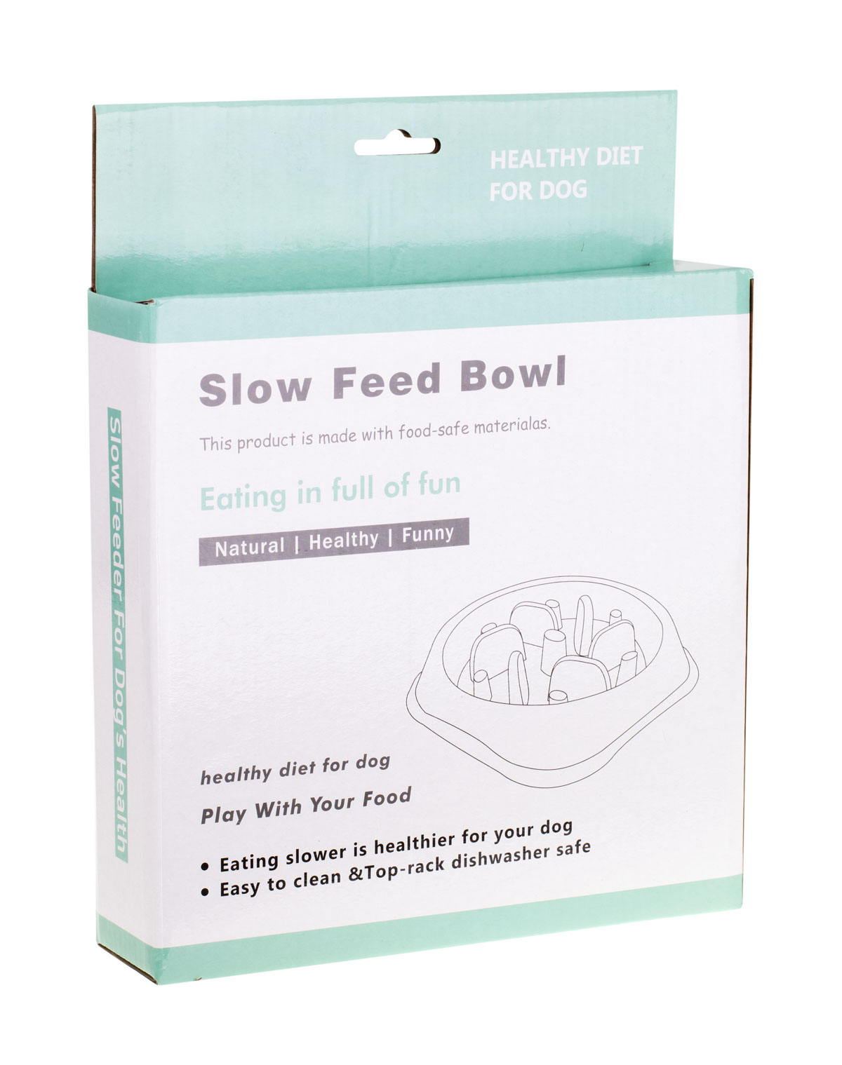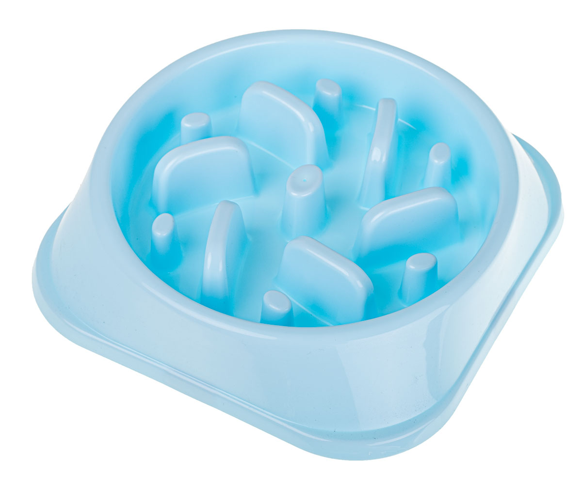 Dacă animalul tău mănâncă prea repede, dă-i de mâncare într- un vas care încetinește alimentele . Vasul îl va face să fie nevoit să-și încetinească aportul alimentar în mod natural. Castronul nostru a fost conceput în așa fel încât să imite căutarea naturală a hranei de către câine.
