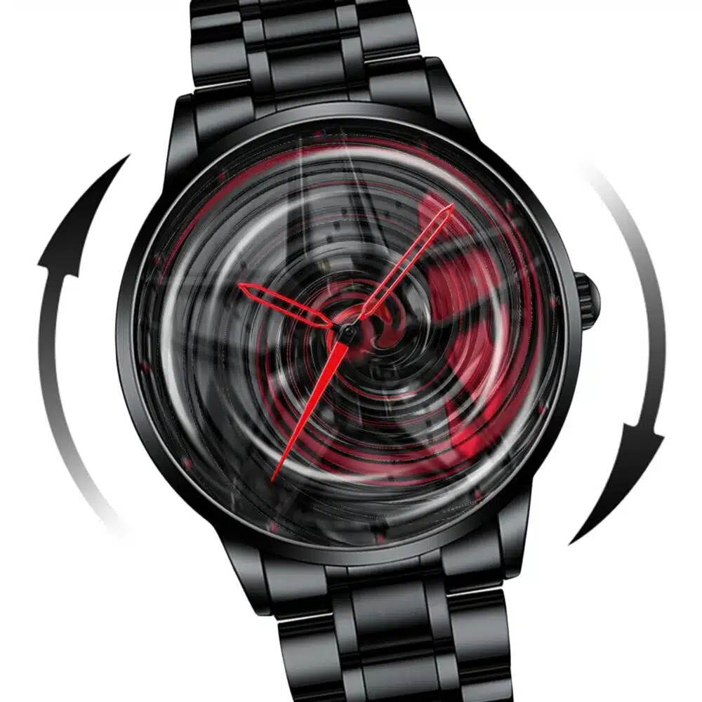 Întregul cadran se rotește în ceas, imitând mișcările unei roți! Turațiile cu aspect impresionant vă pot încânta prietenii sau pot atenua dorul de mașină printre fanii celor patru roți atunci când aceștia nu sunt la volan.