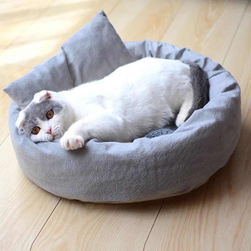 Culcus moale cu perna, pentru caine/pisica, culoare gri, impermeabil, baza antiderapanta, 50 cm