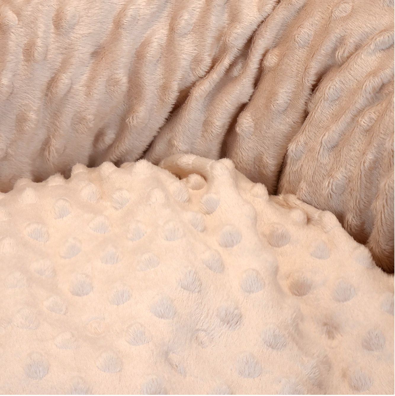 Culcus moale cu perna, pentru caine/pisica, Model Minky, culoare crem-maro, impermeabil, baza antiderapanta, 50 cm