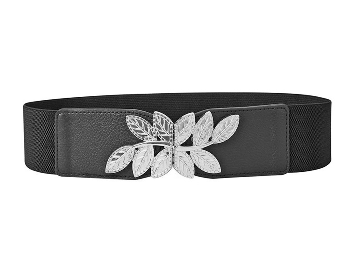 Curea elastică, largă. Prevazuta cu catarama dubla cu motiv de frunze, care ii adauga stil si eleganta. Cureaua este realizată din piele PU durabilă și rezistentă la abraziune.