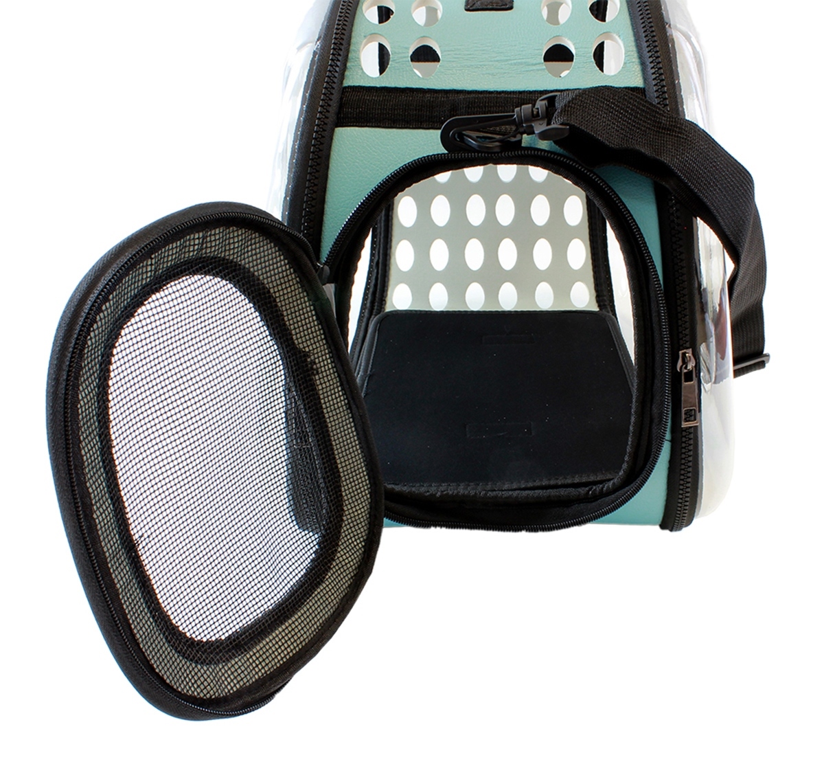 Geantă de transport de înaltă calitate pentru animalele de companie mici. Perfect pentru a ne muta pisica sau iepurele la orice distanță. Designul extrem de confortabil va asigura confort atât pentru noi cât și pentru animale. Materialul puternic din care au fost confecționate transportoarele, un mâner solid și o curea de umăr reglabilă asigură o utilizare lungă și fără probleme a produsului. Geanta este respirabilă și sigură pentru animalul de companie datorită sistemului de ventilație. Confortul de utilizare este asigurat și de un fermoar dublu pe ambele părți ale suportului. Pereții laterali transparenți asigură faptul că animalul este în contact cu lumea și minimizează stresul asociat cu transportarea acestuia.