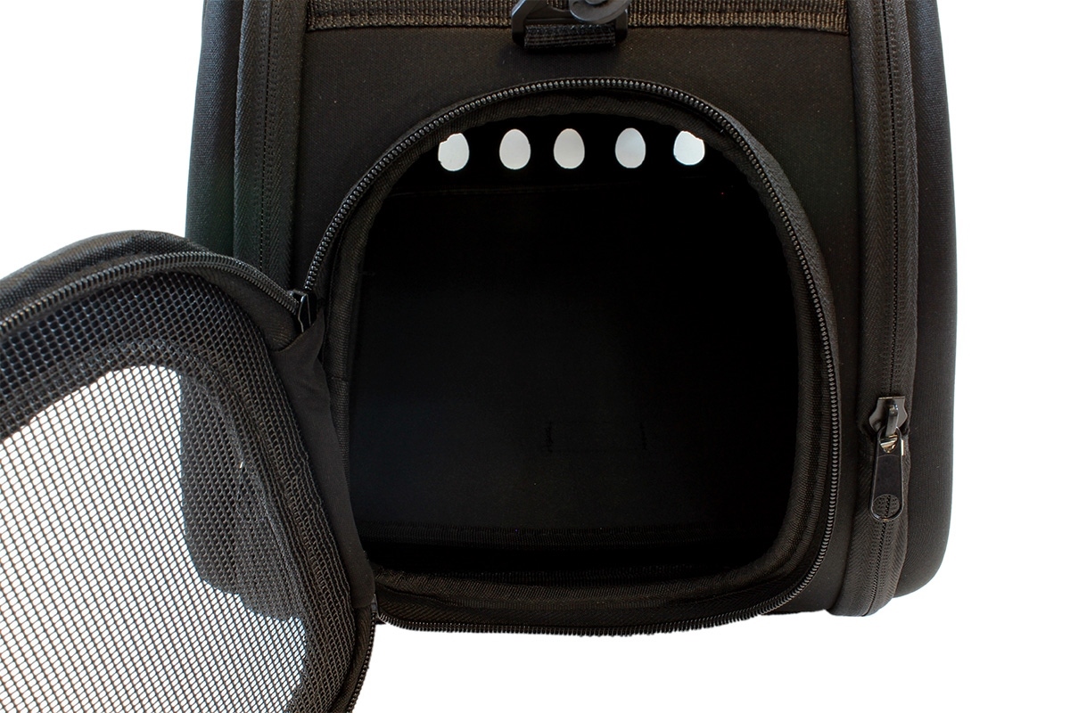 Geantă de transport de înaltă calitate pentru animalele de companie mici. Perfect pentru a ne muta pisica sau iepurele la orice distanță. Designul extrem de confortabil va asigura confortul atât pentru noi, cât și pentru animal. Materialul puternic din care au fost confecționate transportoarele, un mâner solid și o curea de umăr reglabilă asigură o utilizare lungă și fără probleme a produsului. Geanta este respirabilă și sigură pentru animalul nostru de companie datorită sistemului de ventilație. Confortul de utilizare este, de asemenea, asigurat de un fermoar dublu pe ambele părți ale suportului.