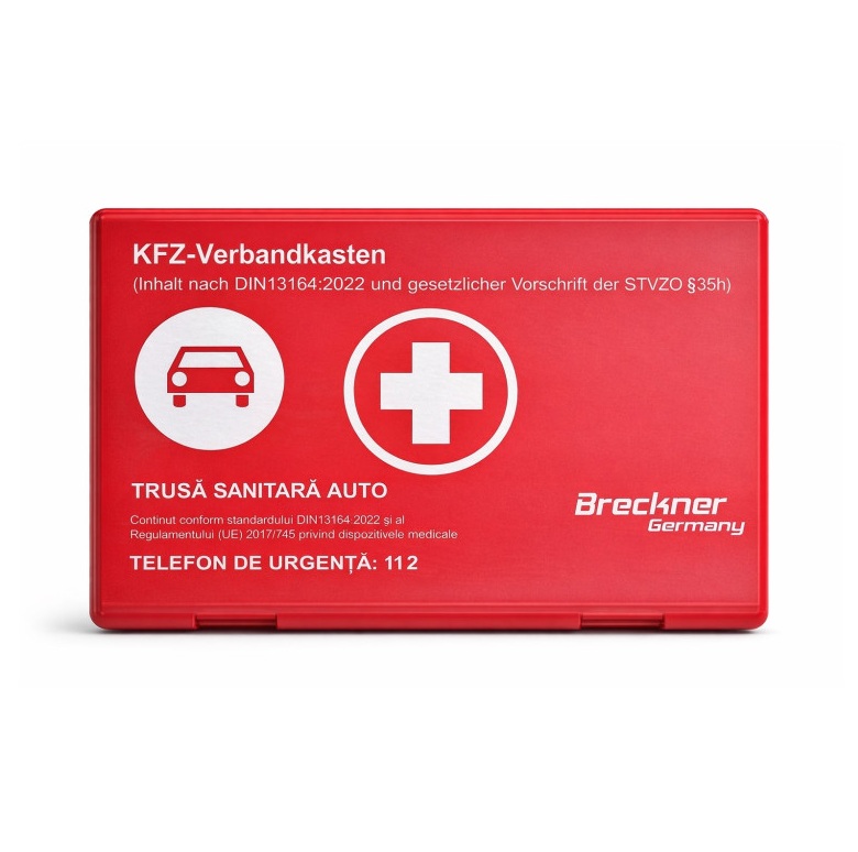 - 1 x Trusa medicala auto, valabila pana la 24.10.2030 (Conforma cu standardul DIN 13164 si toate normele CE)