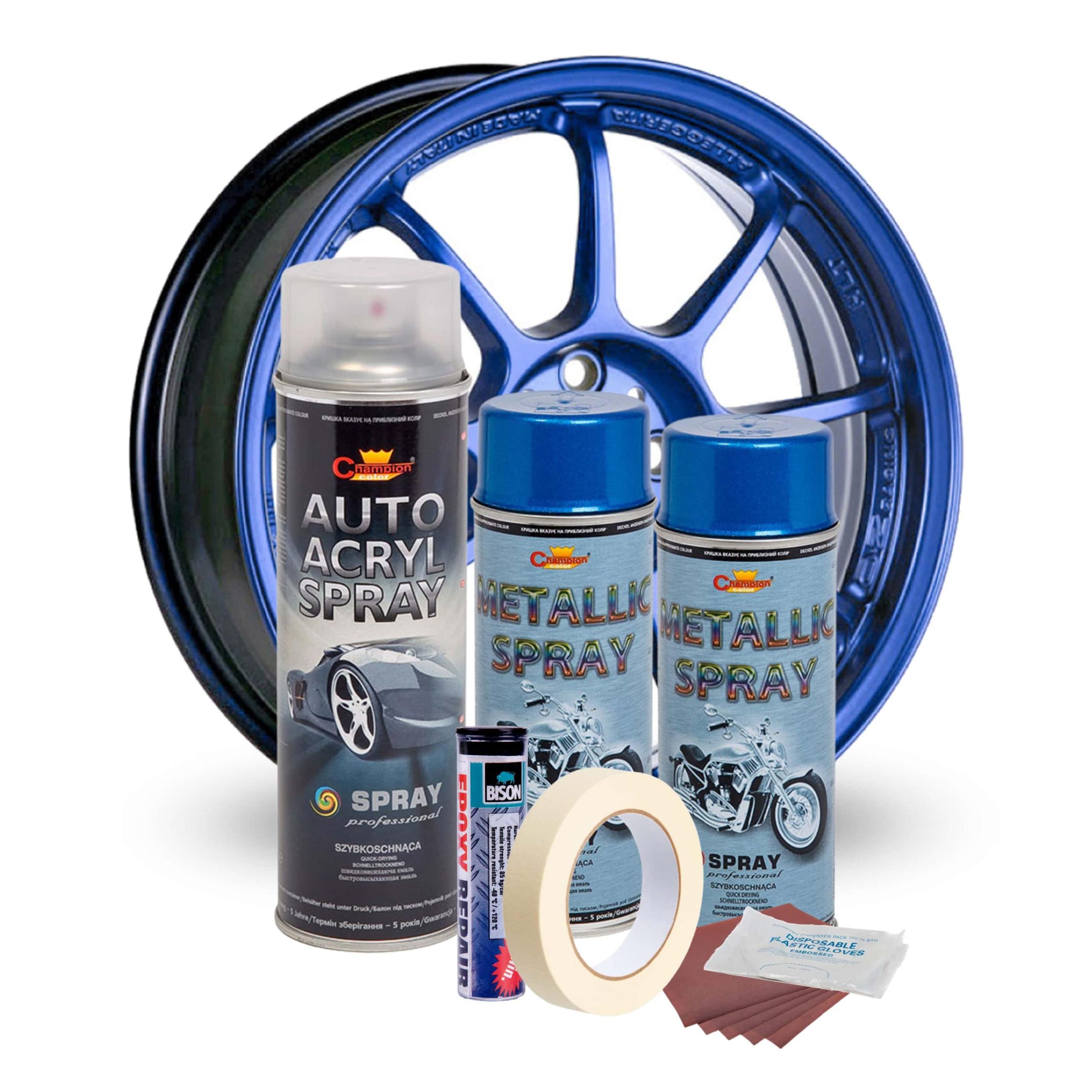 Kit complet reparatie si vopsire jante culoare Albastru Metalizat, V2