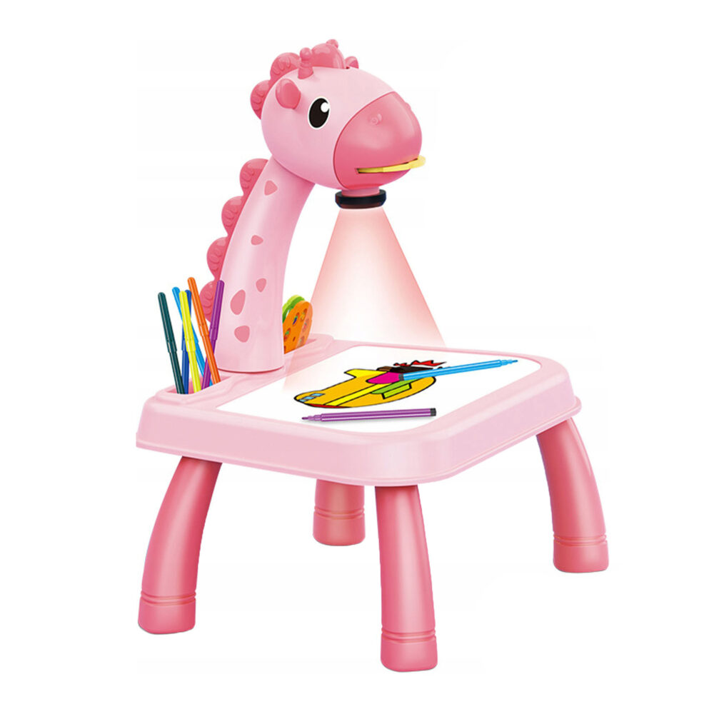 Masa Muzicala de Desen pentru copii cu Proiector, model Girafa, culoare Roz, 24 imagini, AVX-WT-222-2-PINK-GIRAFFE