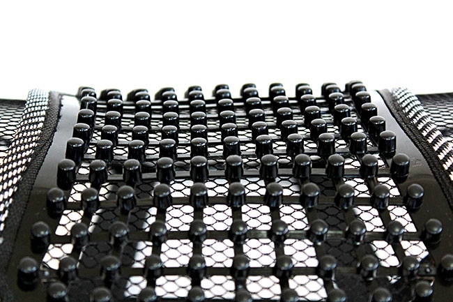 Perna pentru zona lombară din plasă fină. Asigură poziționarea corectă a coloanei vertebrale în timpul șederii prelungite în poziție așezată. Crește semnificativ confortul de a sta la serviciu. Filele de masaj vor face ca conducerea unei mașini sau orele lungi petrecute în fața computerului să fie și mai plăcute.