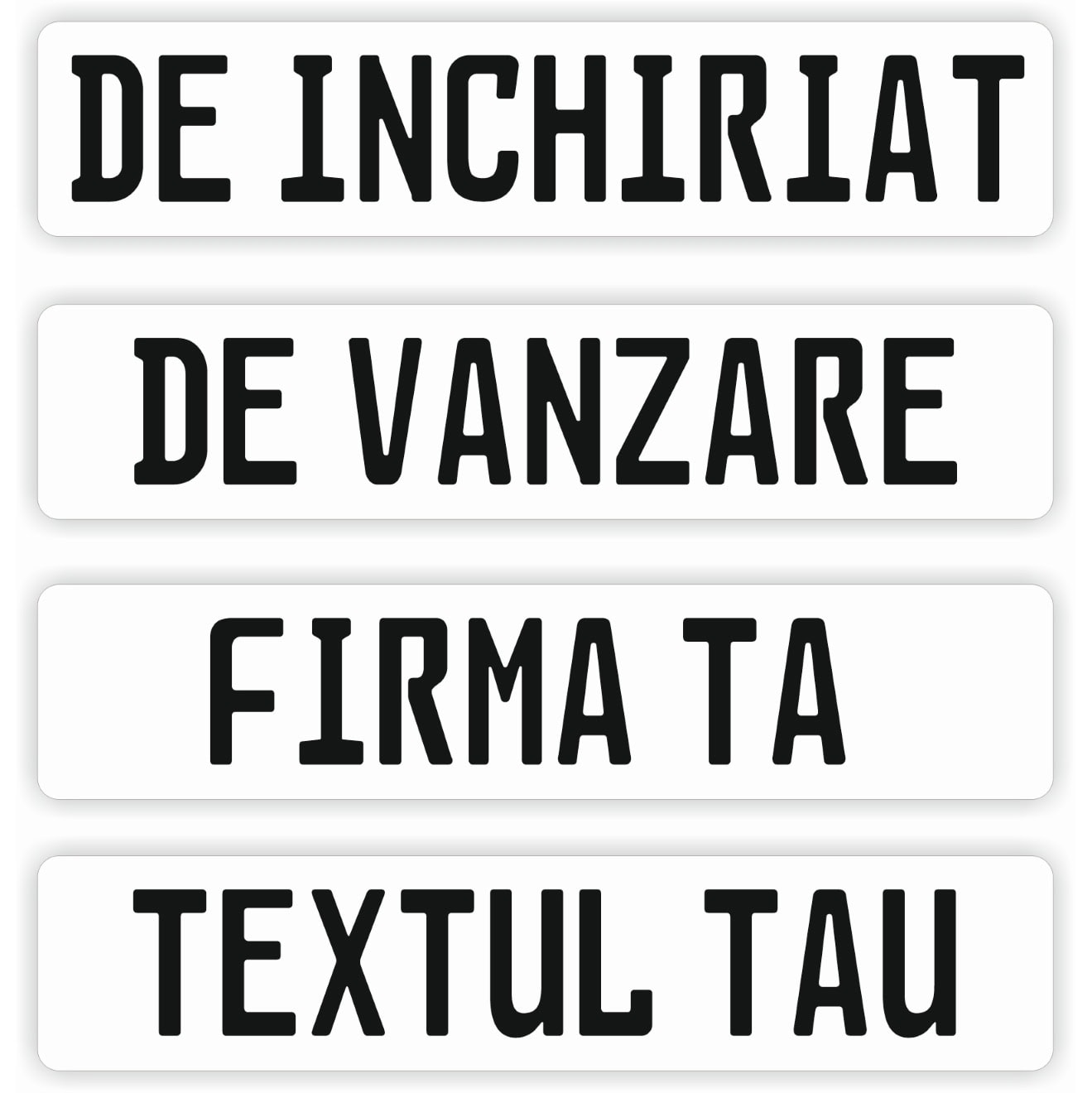 Placuta de inmatriculare „CUSTOM TEXT”, dimensiune 52 x 11 cm, culoare alba, material PVC, 33 de caractere incluse