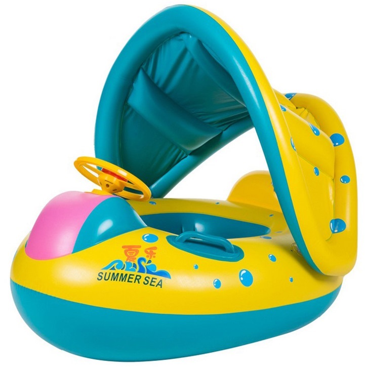 Ponton, Saltea de apa, gonflabila pentru copii cu acoperis, dimensiune 65 x 73 cm