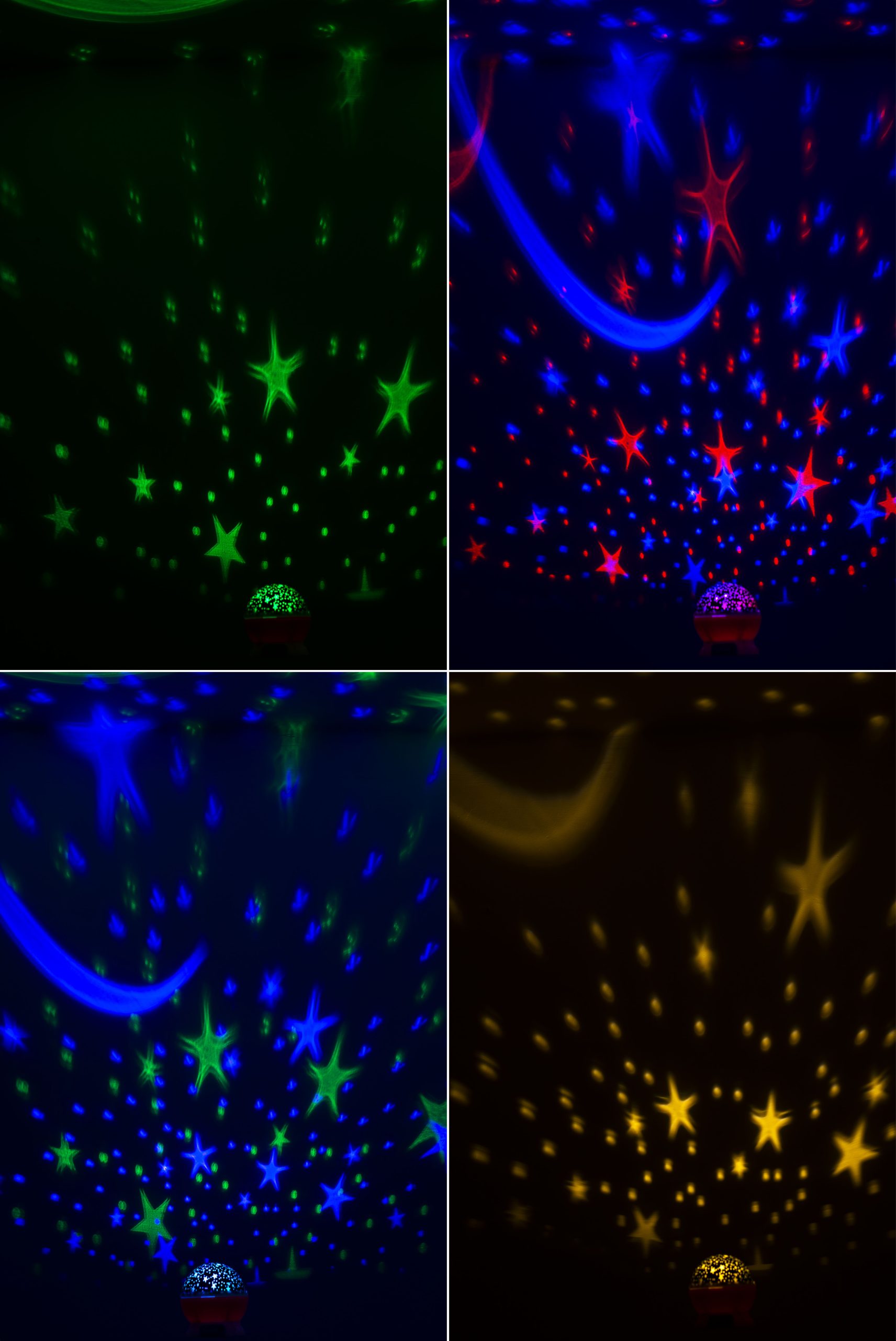 Lampa afișează proiecții ale cerului înstelat în diferite culori și moduri – de exemplu schimbarea lină a culorii sau oprirea individuală a culorii. Este ușor de utilizat, controlat de butoanele ABC de pe panoul frontal. Butonul A pornește/oprește dispozitivul, butonul B vă permite să alegeți unul dintre cele 9 moduri de afișare, butonul C vă permite să porniți/opriți mecanismul de rotație al lămpii.