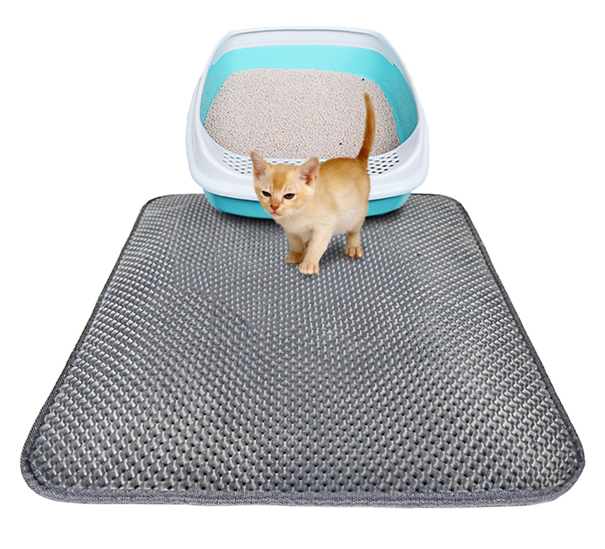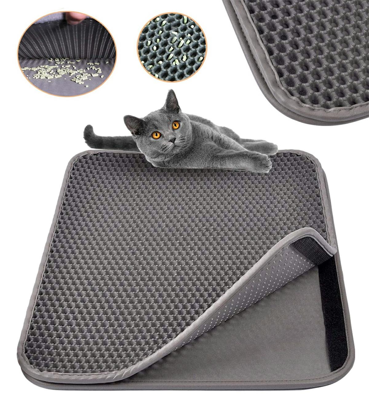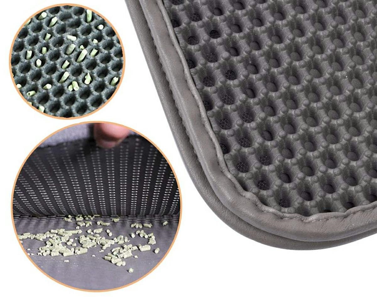 Saltea igienică pentru o pisică. Oprește în mod eficient pietrișul și firimiturile de nisip din cutia de gunoi. Este suficient să o așezați lângă litiera de gunoi și pisica va lăsa particule de pietriș când va trece prin ea. Covorul este format din două straturi – o plasă care oprește murdăria și un strat inferior antiderapant. Fundul etanș previne scurgerea murdăriei pe podea. Straturile sunt separate cu velcro, astfel încât să putem curăța rapid întregul saltea. Covorul este potrivit pentru aspirare și curățare umedă!