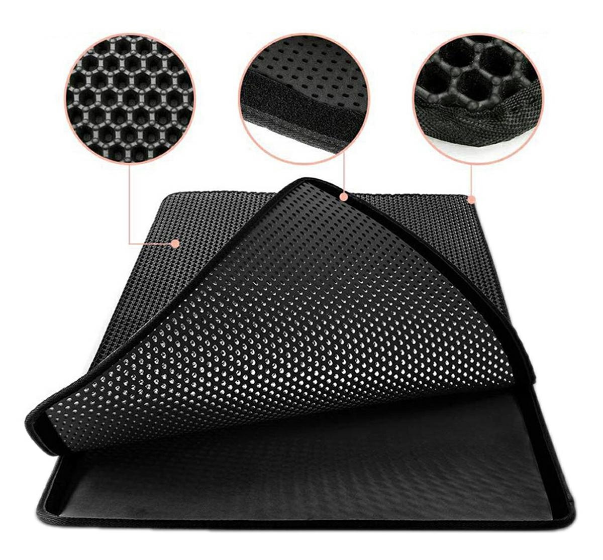 Saltea igienică pentru o pisică. Oprește în mod eficient pietrișul și firimiturile de nisip din cutia de gunoi. Este suficient să o așezați lângă litiera de gunoi și pisica va lăsa particule de pietriș când va trece prin ea. Covorul este format din două straturi – o plasă care oprește murdăria și un strat inferior antiderapant. Fundul etanș previne scurgerea murdăriei pe podea. Straturile sunt separate cu velcro, astfel încât să putem curăța rapid întregul saltea. Covorul este potrivit pentru aspirare și curățare umedă!
