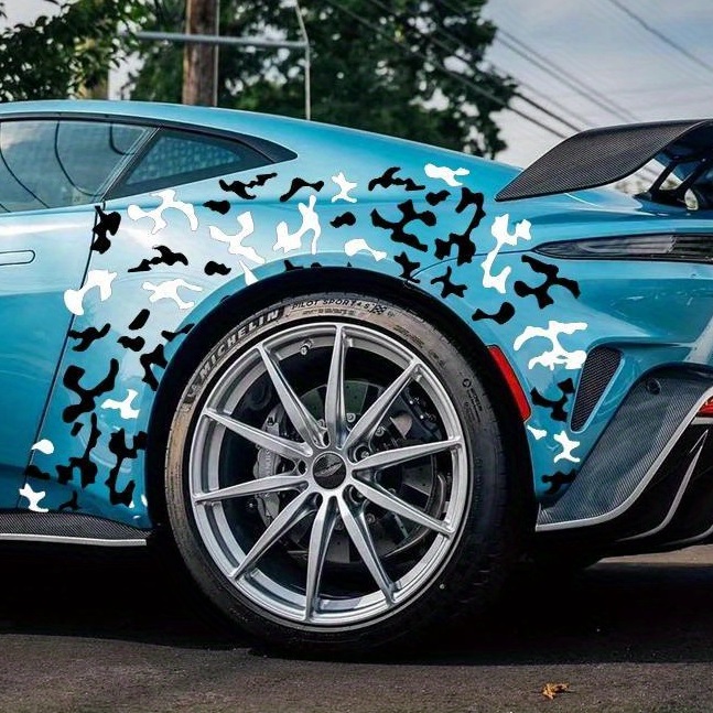 Set 2 stickere autoadezive Tuning in doua culori, model „Paint Stains”, dimensiune 97 x 47 cm, culoare Negru + Alb