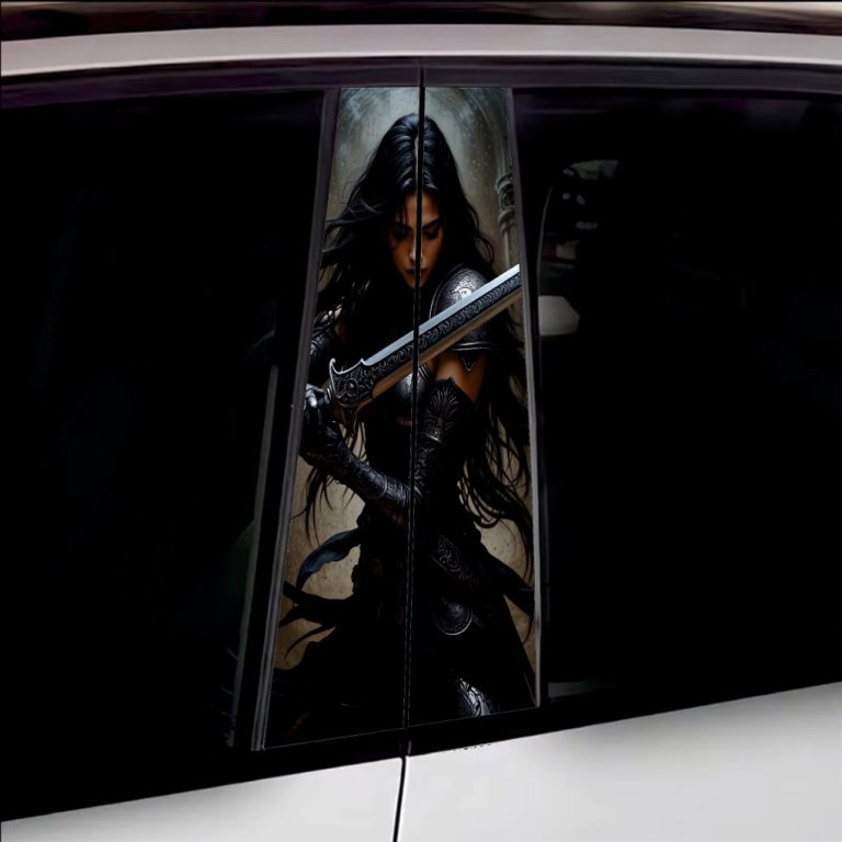Set 2 folii printate outdoor pentru colantarea stâlpilor ușilor autoturismului dvs. Folia imprimată cu EcoSolvent Outdoor aderă pe orice suprafață plană, netedă. În cazul suprafețelor rugoase, aderența produsului va scadea considerabil.