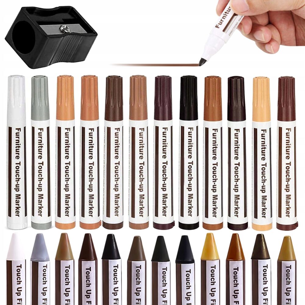 Datorită setului nostru, puteți efectua singur reparații minore. Alegând dintre cele mai populare 12 culori de lemn, o poți alege pe cea mai apropiată de culoarea produsului care se repara. Markerele și creioanele au utilizări diferite: