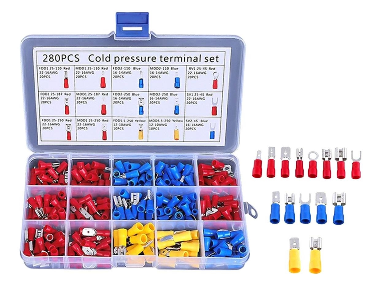 Set 280 de conectori de sertizare izolati, 15 tipuri, in carcasa de plastic