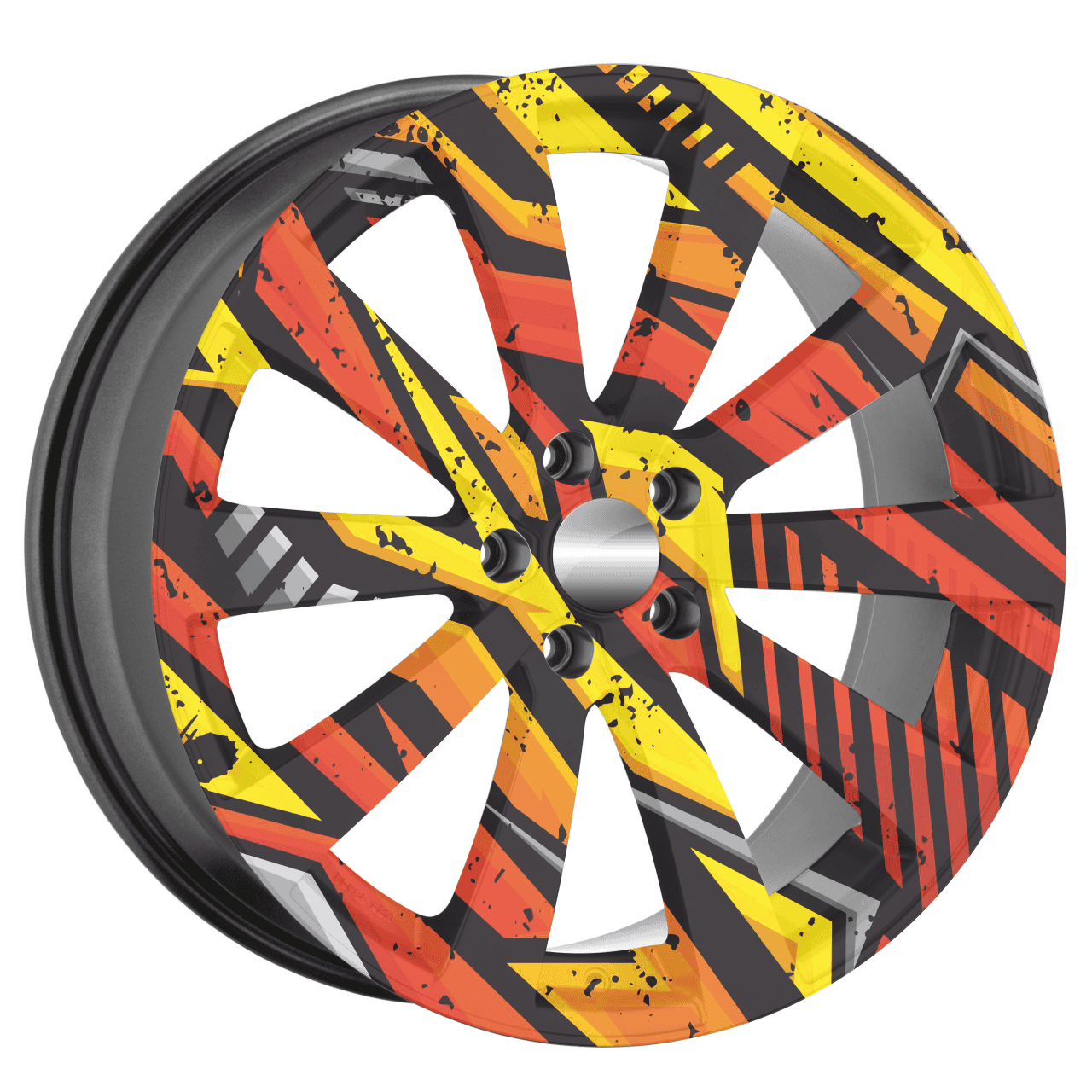 Set Folii Auto pentru Colantare Jante, un produs de inalta calitate imprimat cu Solventi Outdoor, rezistenta indelungata la exterior, dedicat pasionatilor de tuning, competitii auto, show-uri auto. Dimensiunea produsului (Ø 60 cm) este suficienta pentru a colanta jante de pana la 21″.