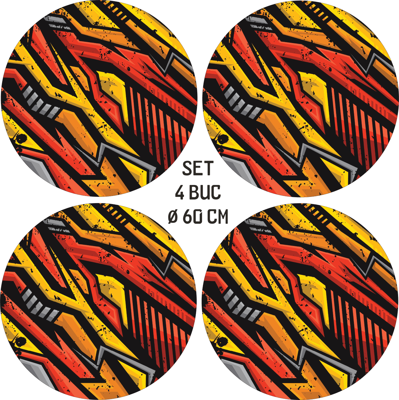 Set 4 Folii Imprimate Outdoor cu EcoSolvent, autoadezive, pentru decorarea jantelor auto, dimetru 60 cm, model FJT-13