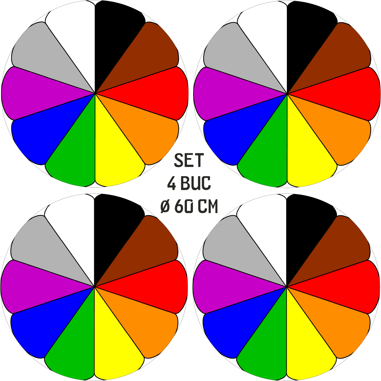 Set 4 Folii Imprimate Outdoor cu EcoSolvent, autoadezive, pentru decorarea jantelor auto, dimetru 60 cm, model FJT-16