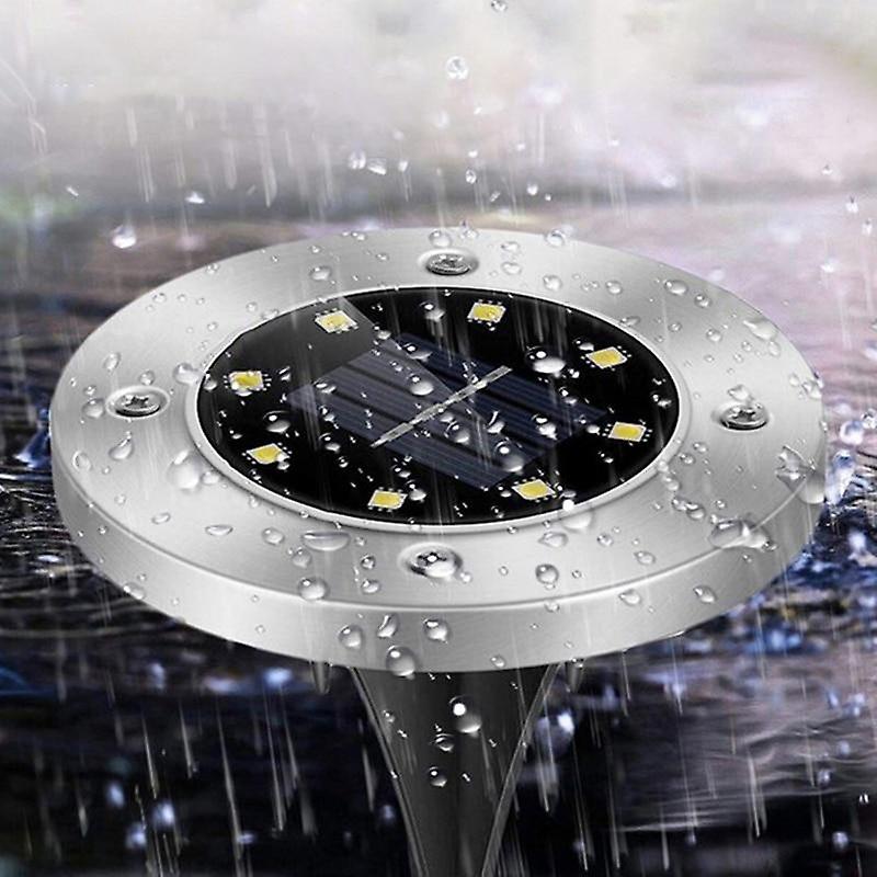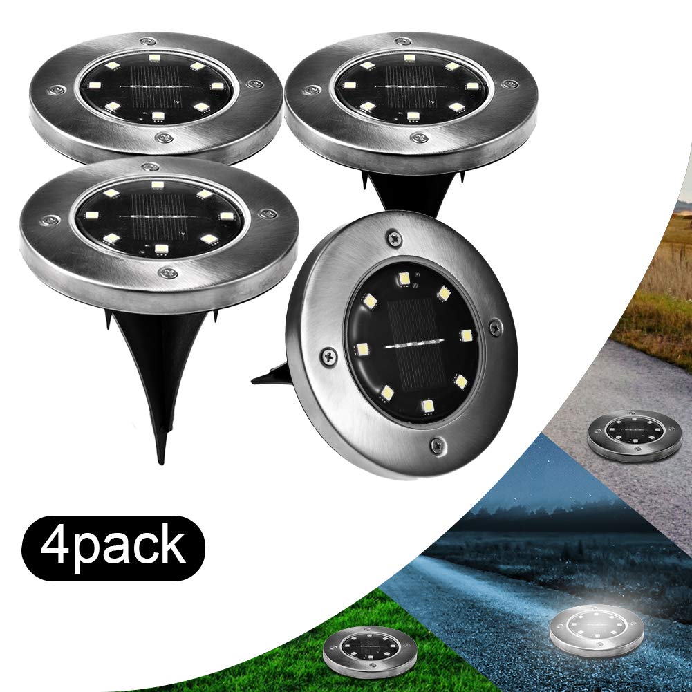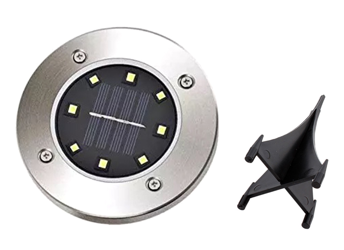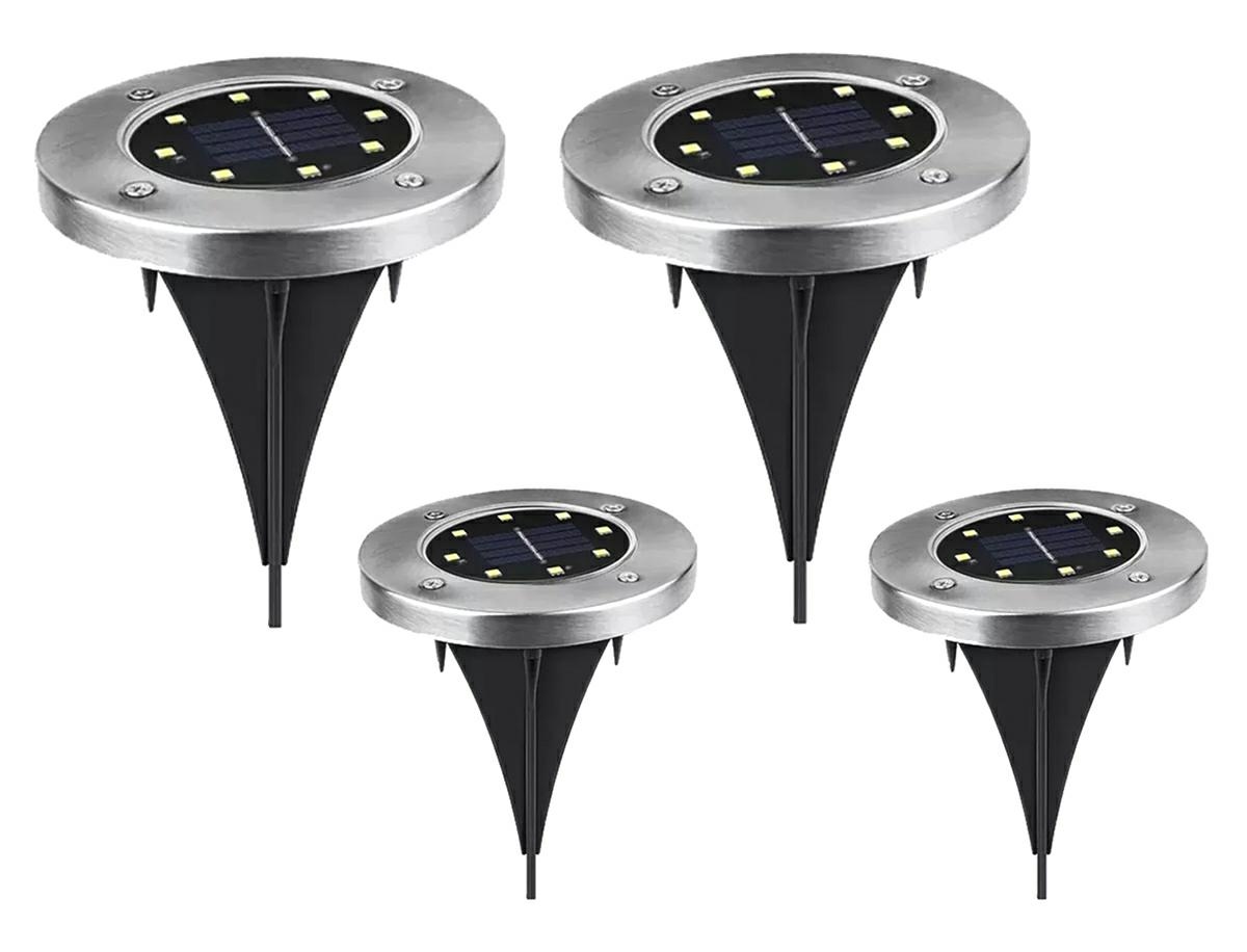 Set de 4 lumini solare de gradina in forma de disc. Lămpile sunt echipate cu 8 LED-uri alimentate cu energia solară de la panoul solar (încărcarea bateriei încorporate). Dispozitivul pornește automat când se întunecă (este echipat cu senzor crepuscular), iar o încărcare completă a bateriei este suficientă pentru până la 8 ore de funcționare continuă. Este un decor grozav de grădină, cu un finisaj estetic al cadru metalic.