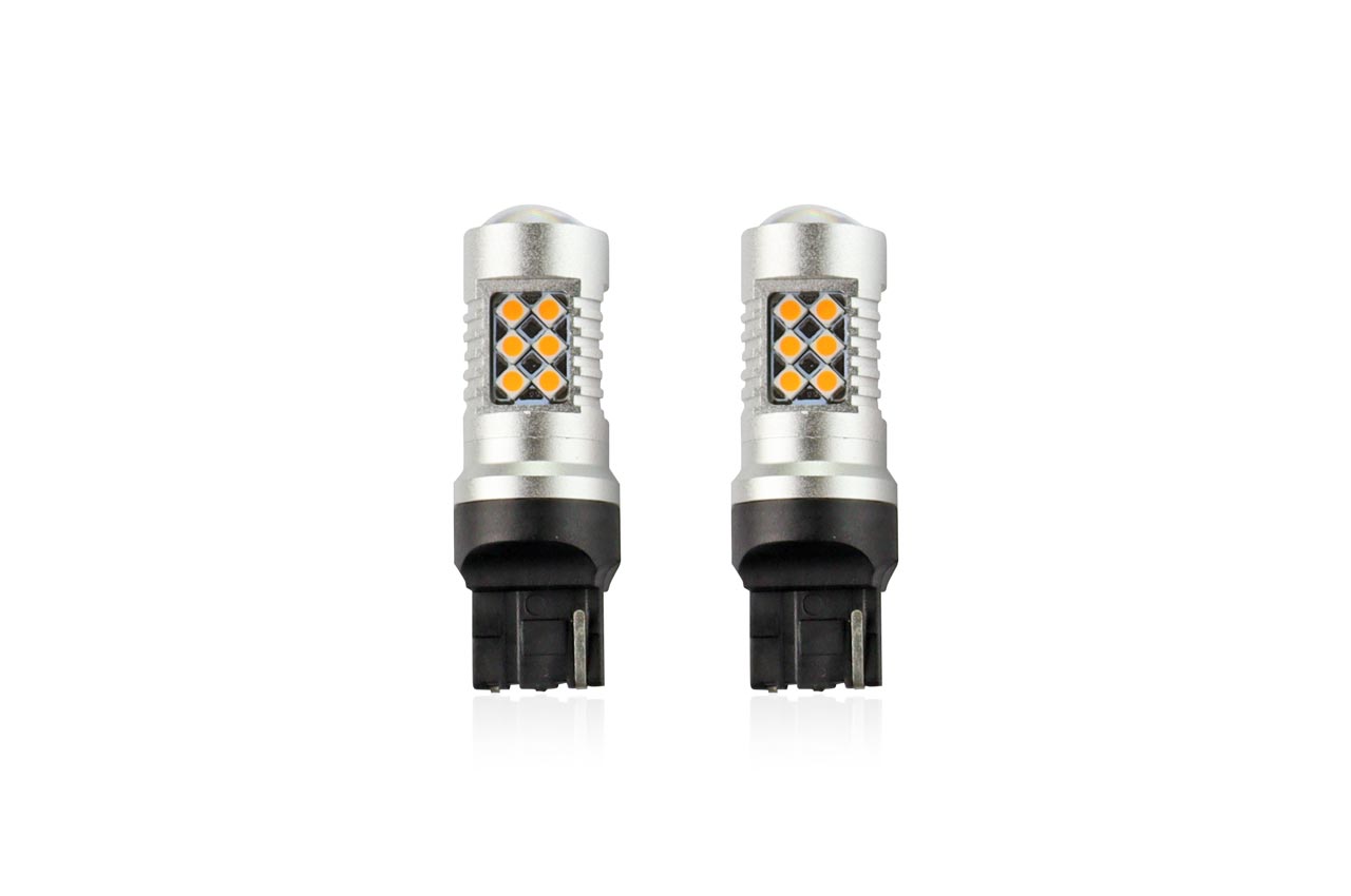 Set becuri auto cu LED CANBUS compatibil W21W T20 24 SMD 6.2W Orange 12/24V, destinat competitiilor auto sau off-road