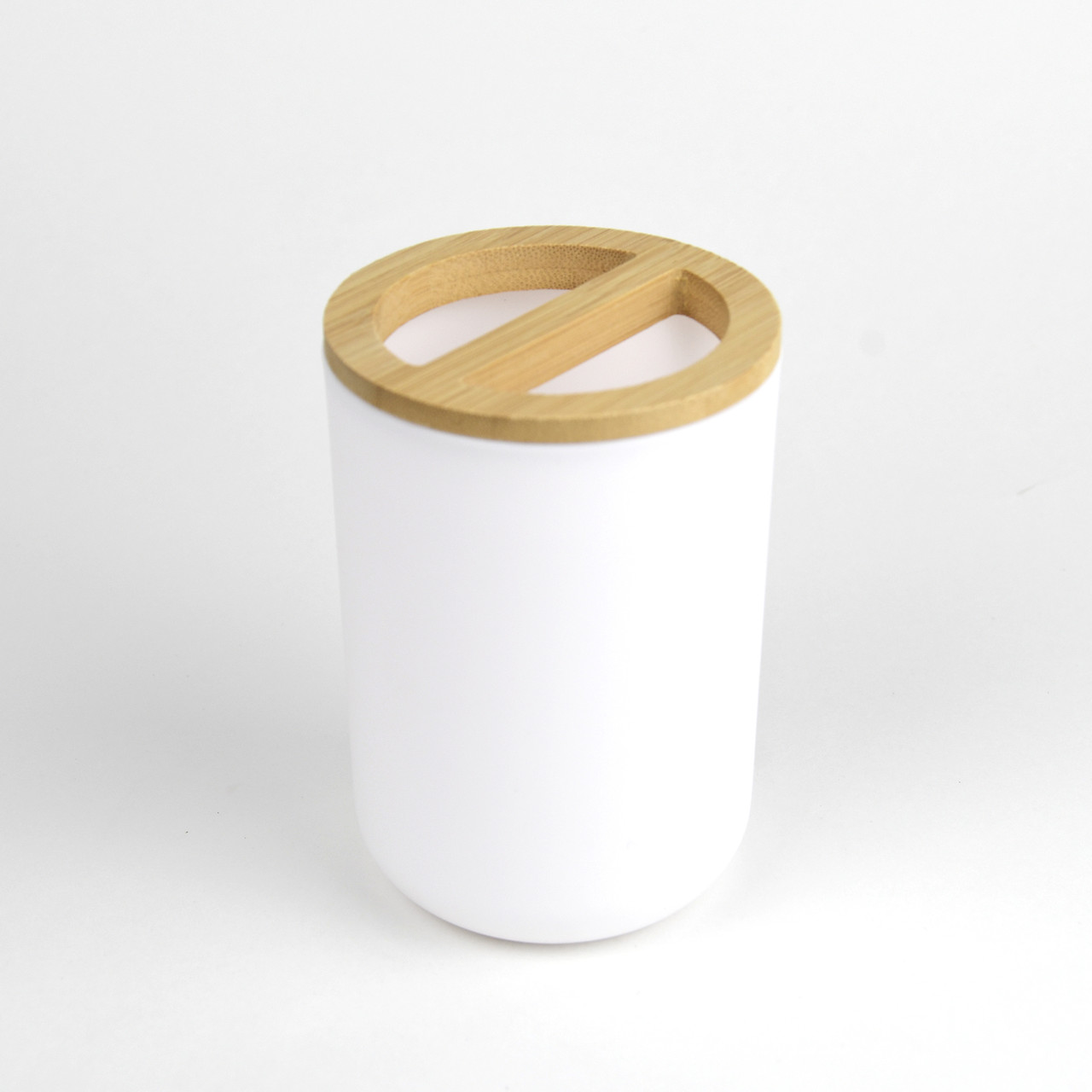 Set Elegant pentru baie format din 6 piese, ABS + lemn, culoare alb/maro