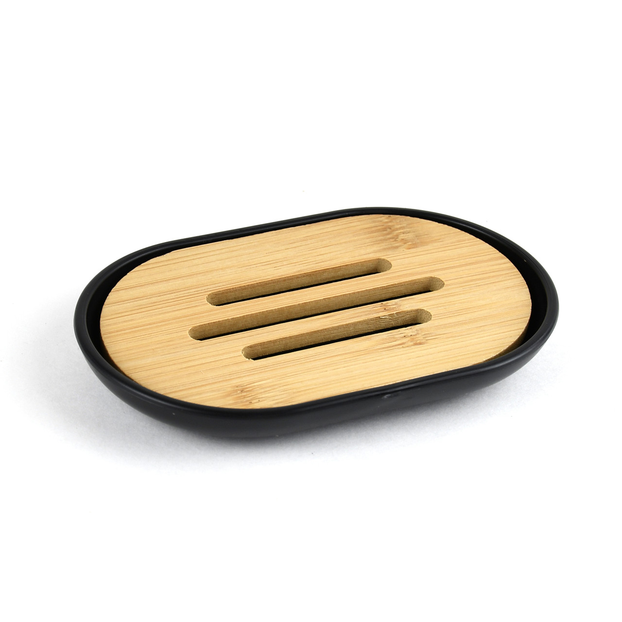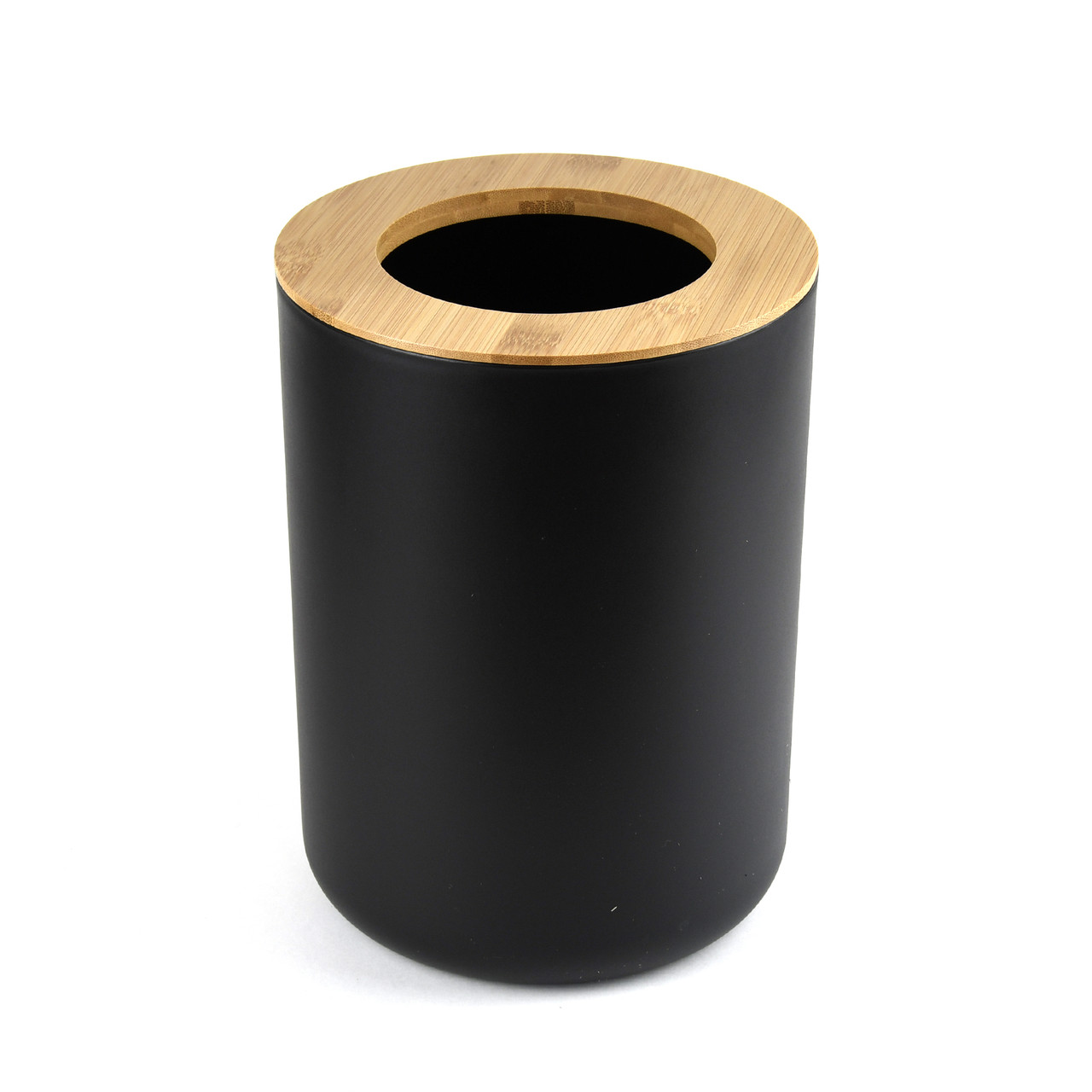 Set Elegant pentru baie format din 6 piese, ABS + lemn, culoare negru/maro