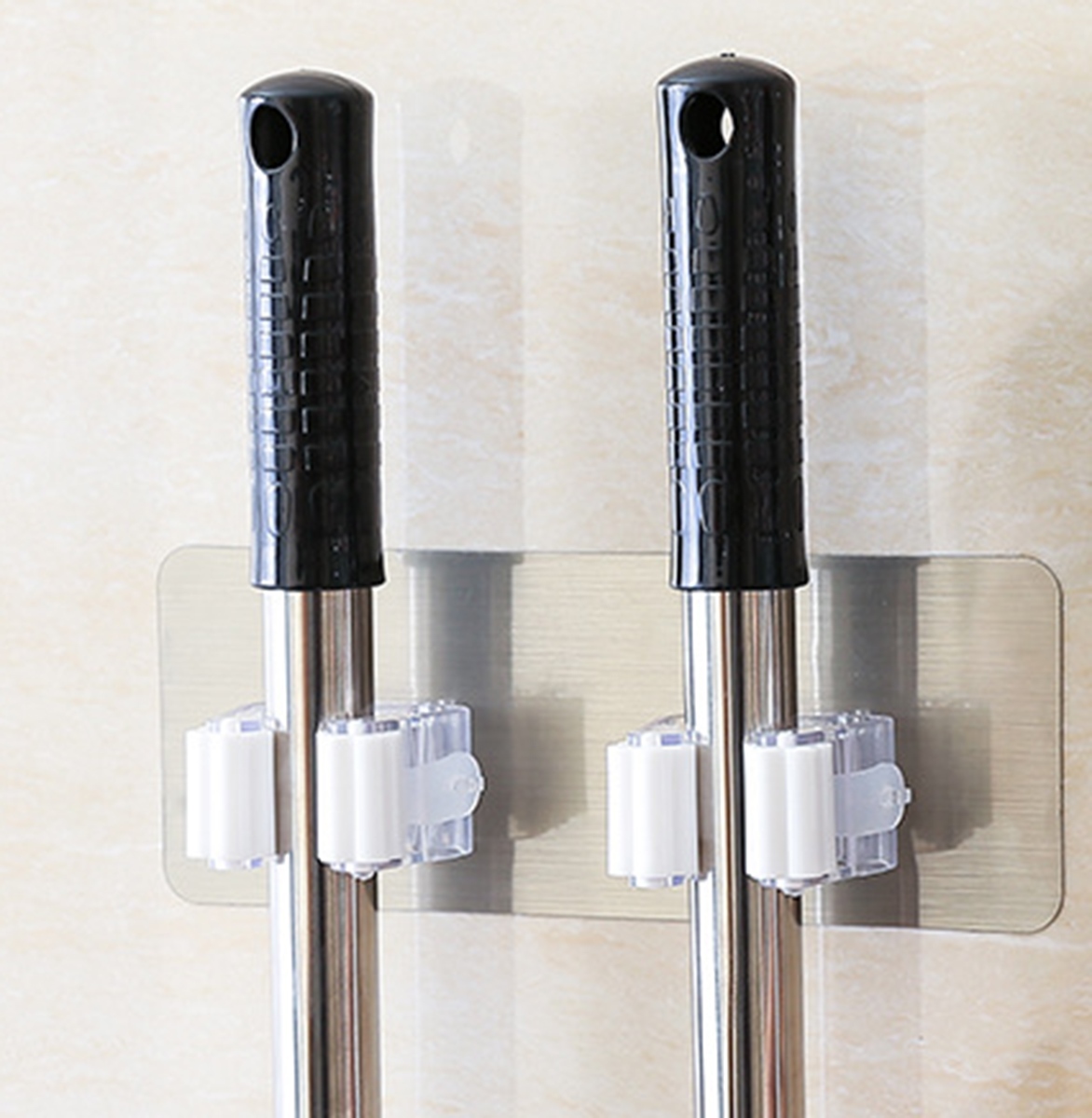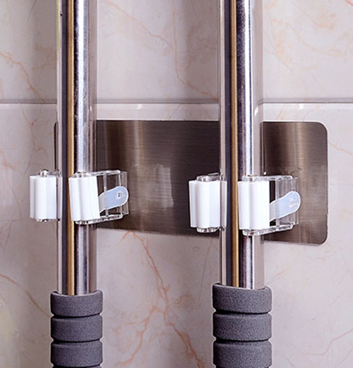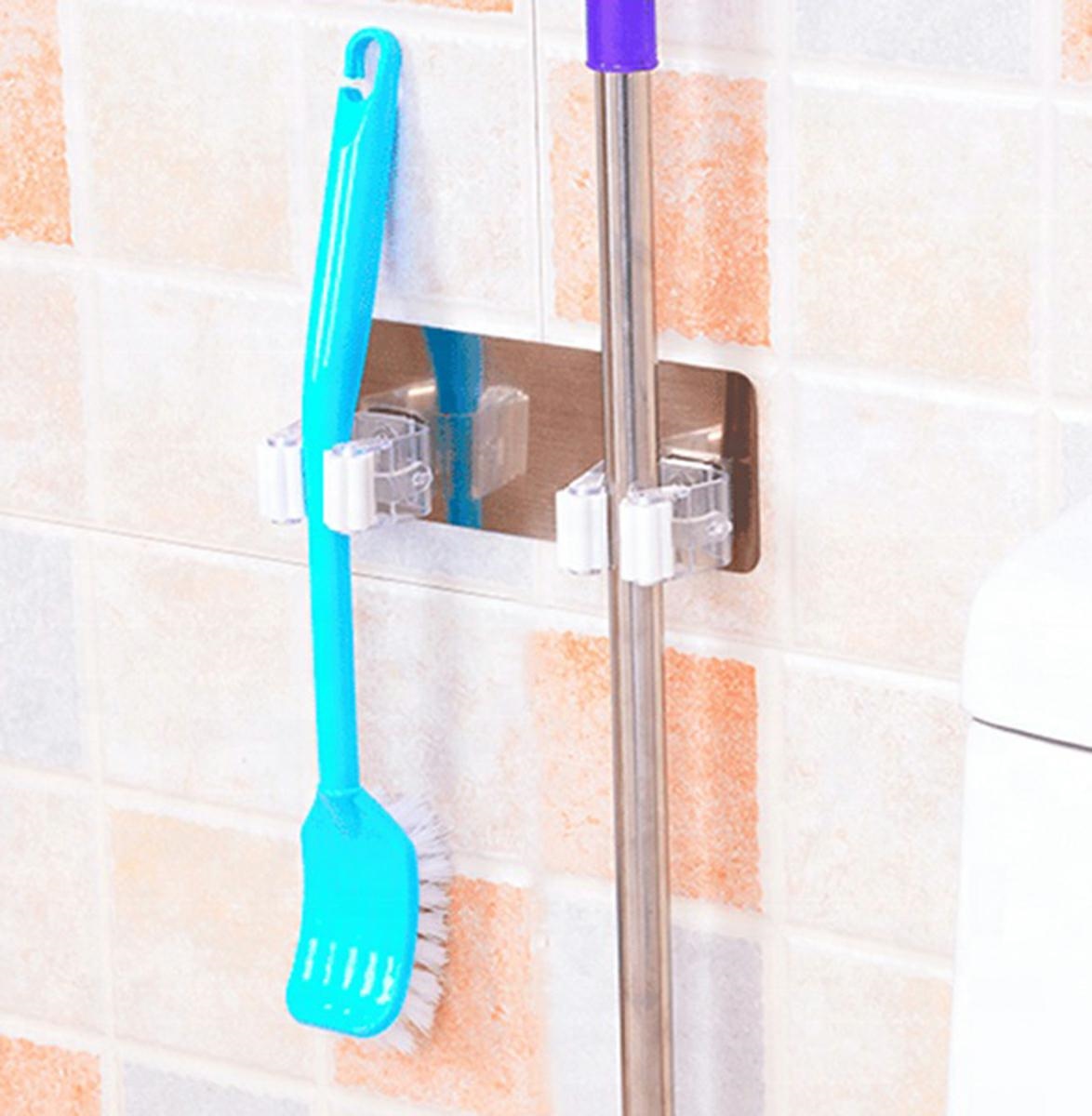 Suport de perete extrem de practic pentru mop sau matura. Este echipat cu doua manere solide cu rola profilata, care pastreaza perfect mopurele/periile la locul lor. Instalare simplă și convenabilă – cuierul este autoadeziv.