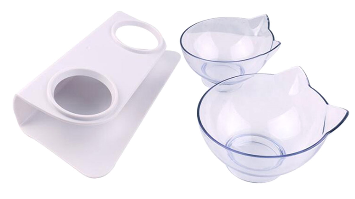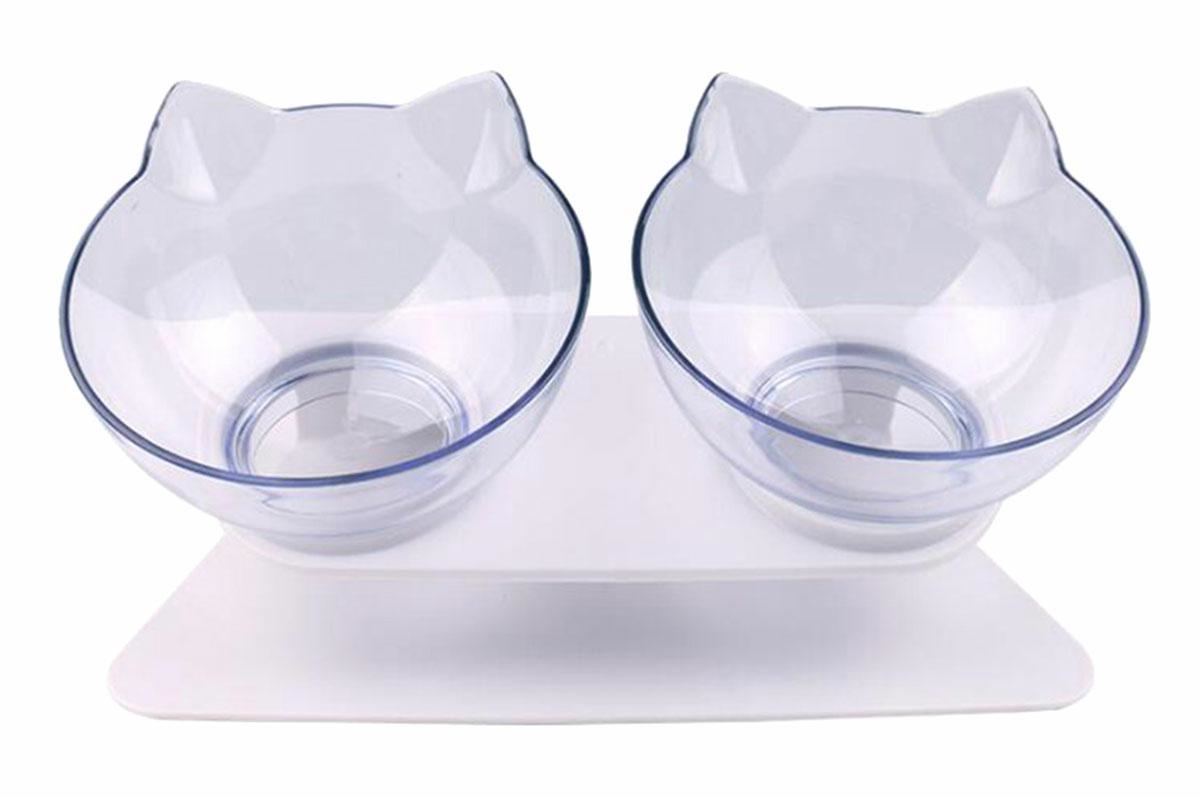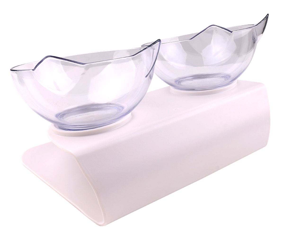 Castron dublu pentru hrana pentru pisici și apă. Bolurile sunt așezate pe un suport special înclinat la un unghi de 15 grade față de animal, făcându-i mai ușor să ia apă și alimente. Structura bine gândită a suportului împiedică vărsarea apei și împrăștierea alimentelor. Bolurile transparente facilitează verificarea cantității de alimente rămase în interior. Un aspect îngrijit, bolurile se vor potrivi în orice bucătărie și hol.