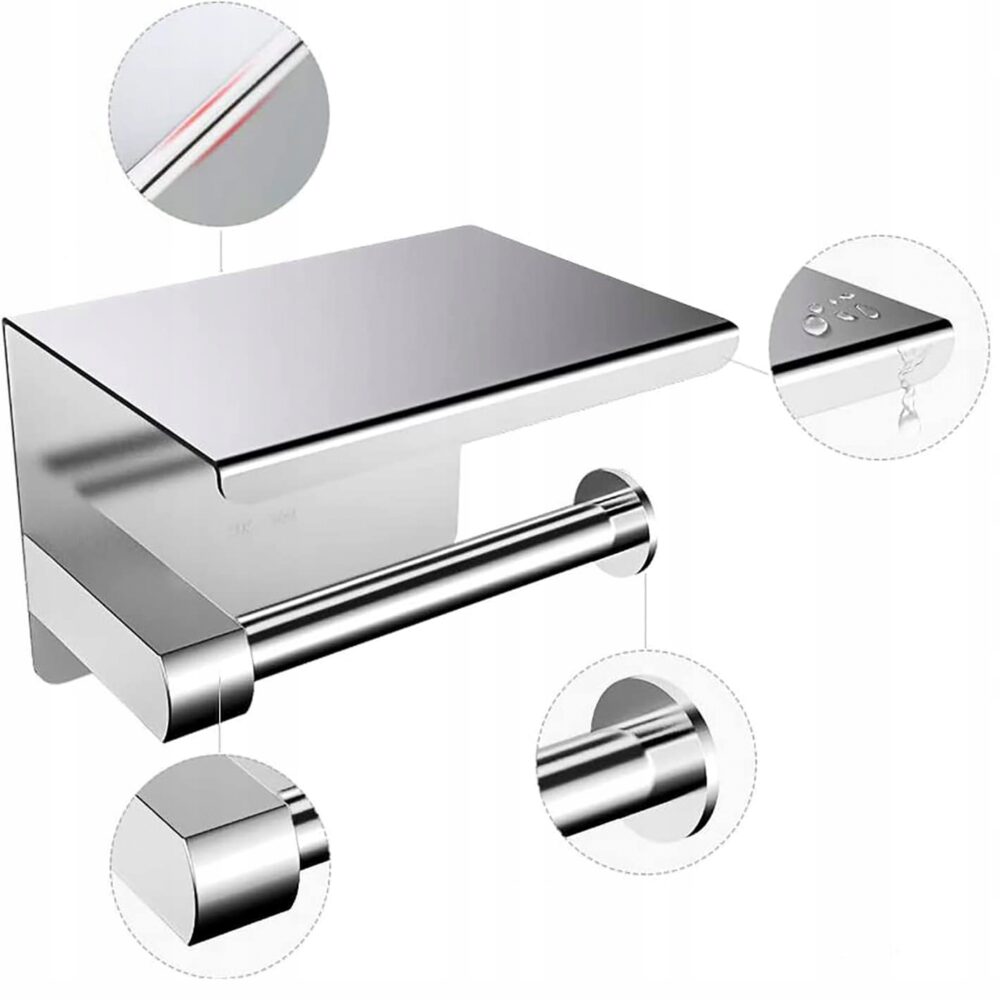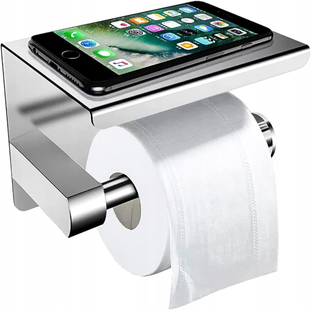 Suport metalic pentru hartie igienica cu raft pentru telefon, finisaj Crom