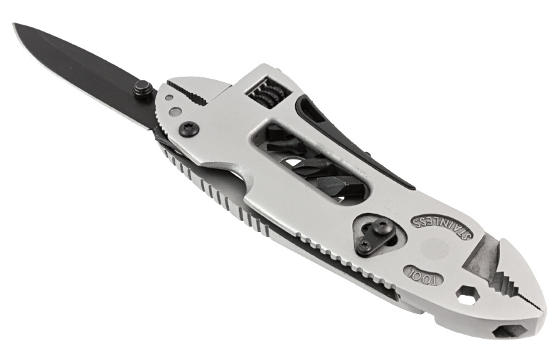 - Multitool conține o serie de instrumente utile, în special utile în timpul călătoriilor, excursiilor, taberelor, campingului sau, de exemplu, într-o mașină, moto sau bicicleta.