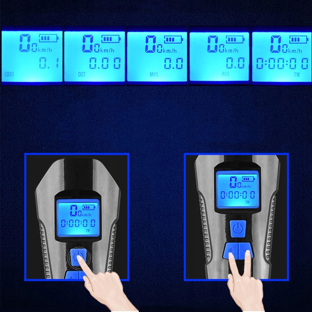 Vitezometru Digital cu lampa Fata + Spate + Claxon cu 6 sunete, waterproof, pentru bicicleta, model AVX-WT-CBL-1X